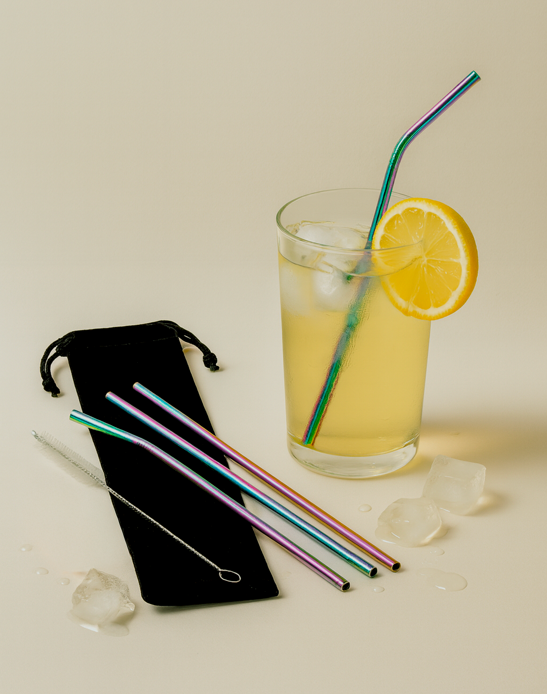 ✔ 4 pailles en acier inoxydable 304 (2 droites + 2 courbées)